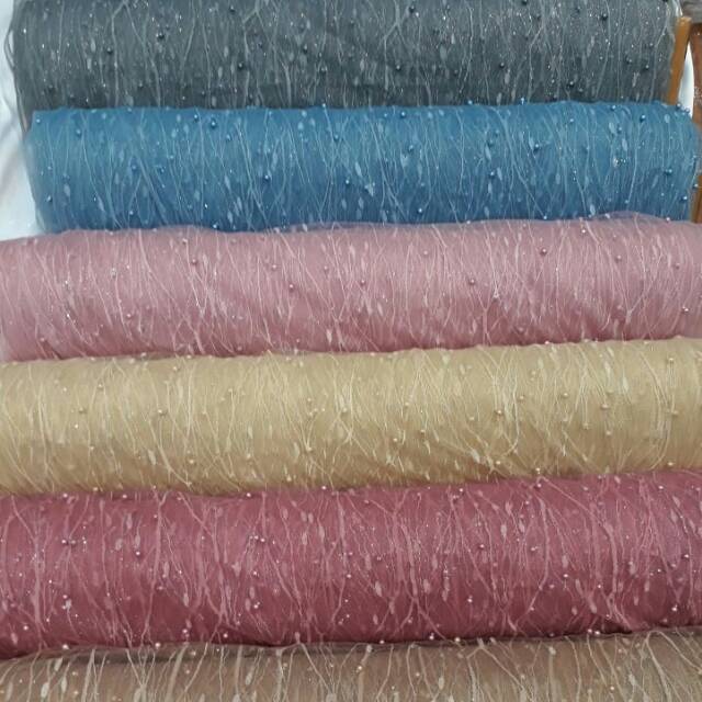 Produk yang satu ini terbuat dari brokat tile akar kombinasi organza.